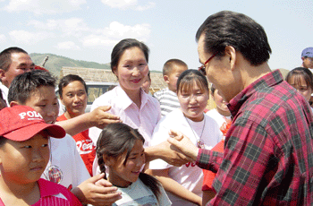 访问蒙古耶稣中心教堂时,热烈欢迎牧师到来的圣徒们。
