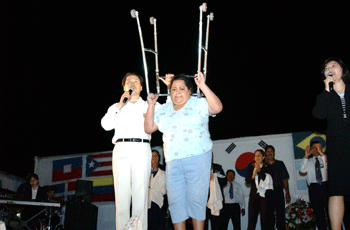 牧師の按手で歩けるようになった女性。