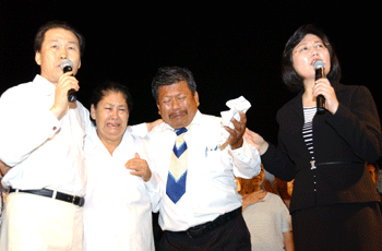 目が見えなかった奥さんが癒されたのを見て感激するロペズ牧師